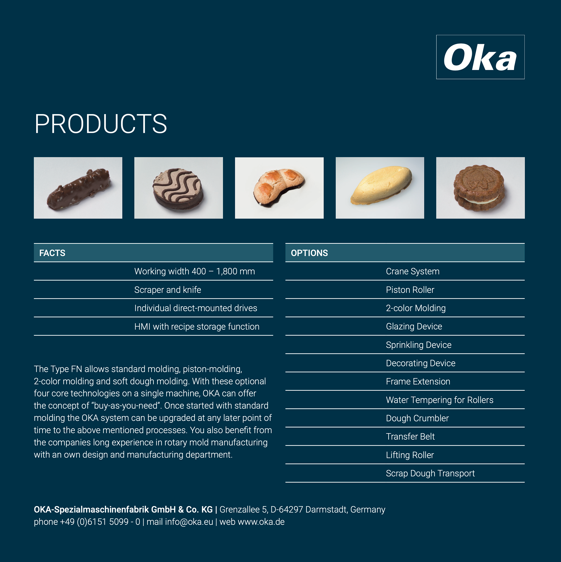 Oka baut Maschinen zur Herstellung von Produkten die uns das Leben versüßen. Und das seit knapp 100 Jahren in der 6. Generation. Ein echtes familiengeführtes Traditionsunternehmen mit einer langjährigen, sehr speziellen Erfahrung im hochwertigen Maschinenbau und einer internationalen Distribution. Kundennähe und Service ist die grundlegende Haltung für im Detail zugeschnittene, nachhaltige Lösungen. Oka builds machines for the manufacture of products that sweeten our lives. And this has been the case for almost 100 years in the 6th generation. A genuine family-run traditional company with many years of very special experience in high-quality mechanical engineering and international distribution. Customer proximity and service is the fundamental attitude for sustainable solutions tailored in detail.